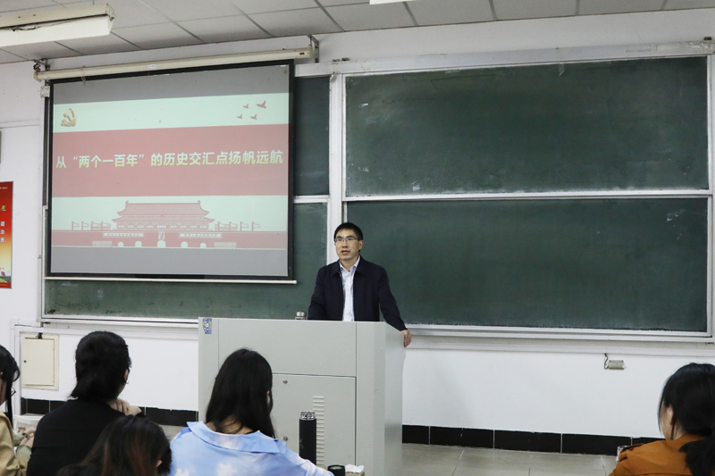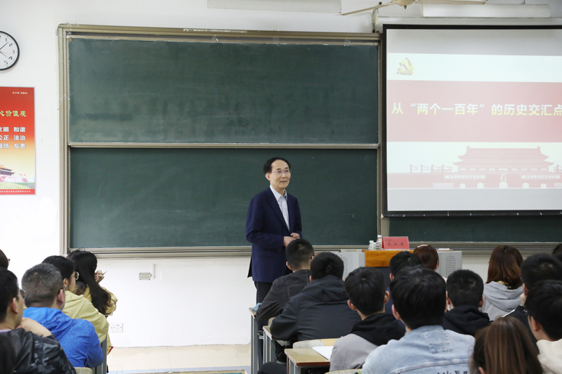 校党委书记朱汉清、校长焦富民分别走进物电学院、法政学院,以《从“两个一百年”的历史交汇点扬帆远航》为题讲授思政课。课程围绕“新坐标:中国已站上“两个一百年”的历史交汇点”“新成就:全面建成小康社会的人间奇迹”“新征程:全面建设社会主义现代化国家的壮丽画卷”等三个层面,详细阐述了中国共产党带领全国各族人民取得的伟大历史成就。