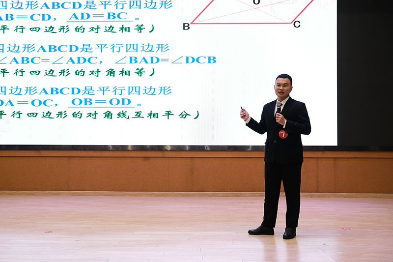 “夜有长灯明,暖一枕梦寐”文学院的姚力嘉通过深情并茂地朗诵以及带入讲述自己的亲情故事向现场展现了别具一格的《背影》,她将亲情是印刻在血脉里的温柔传递给了每一位观众;外国语学院的汤心怡则通过趣味横生的图片以及流利的口语将健康的生活方式通过这样的教学环节层层递进,从而达到她的教学目的。“在数学的天地里,重要的不是我们知道什么,而是我们怎么知道什么”来自数统学院的王永帆泉首先引用了毕达哥拉斯的名言阐述了本节课的教学目的以及基本的数学理念。通过生活中基本事物的观察引入平行四边形的课堂。通过互动、设计、总结的等方式将完整且富有新意的教学模式呈现在观众眼前。在选手汇报结束之后,来自南京海豚教育咨询有限公司的刘彦欣作总结点评。在教学的过程中,教师要明确自己的教学目的,应该以学生为主体,充分发挥教师的主导作用。作为一名优秀的人民教师,应当意识到PPT只是我们教学的一种工具,在使用的过程中我们要跳出它的束缚,让PPT为我们所用。
