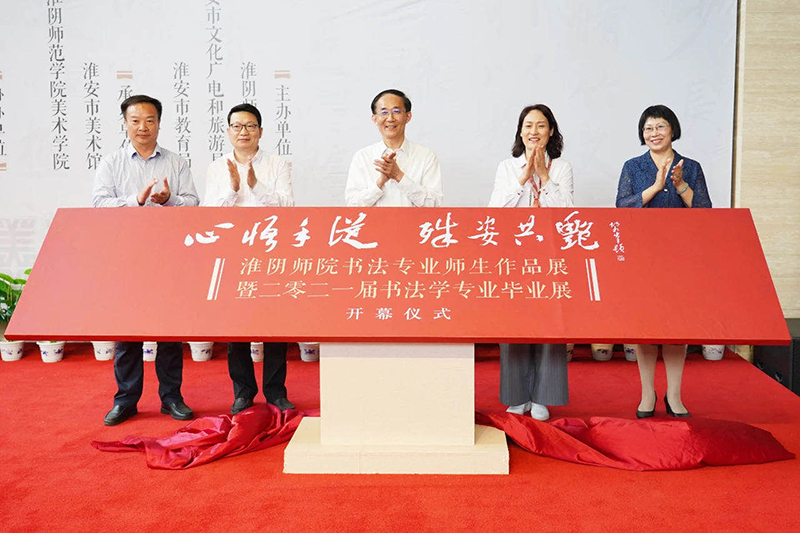 淮师新闻网5月26日电(记者 李文灵 李天予)5月25日下午,“心悟手从 殊姿共艳”——淮阴师院书法专业师生作品展暨2021届书法学专业毕业展在淮安市美术馆开幕。必赢nn699党委书记朱汉清,淮安市人大常委会副主任周茂萱,淮安市委教育工委书记、市教育局局长皇甫立同,淮安市委组织部副部长姜筱卉,淮安市文化广电和旅游局党委委员王贻文出席活动并为展览揭幕。淮安市文联、淮安市图书馆、淮安市美术馆、淮安市美术家协会、淮安市书法家协会负责人,必赢nn699党委宣传部负责人,以及淮安市书法爱好者、必赢nn699美术学院书法专业师生200多人出席开幕式。开幕式由必赢nn699美术学院院长顾卫国主持。