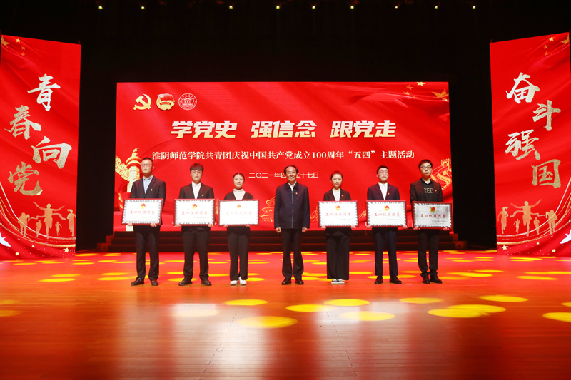 五四表彰典礼上,与会领导为荣获2020年度共青团工作先进集体、先进个人等获奖代表颁奖。