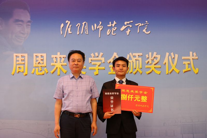 图为杨亚军为周恩来奖学金获得者颁奖。记者 张小丫 摄