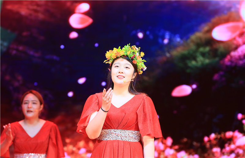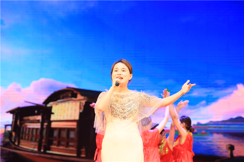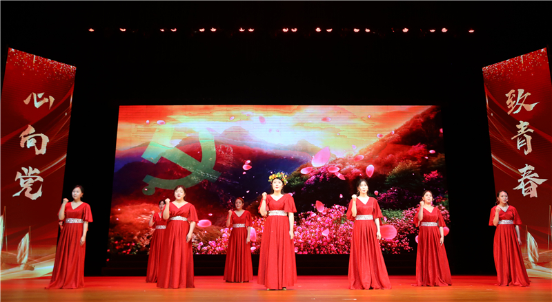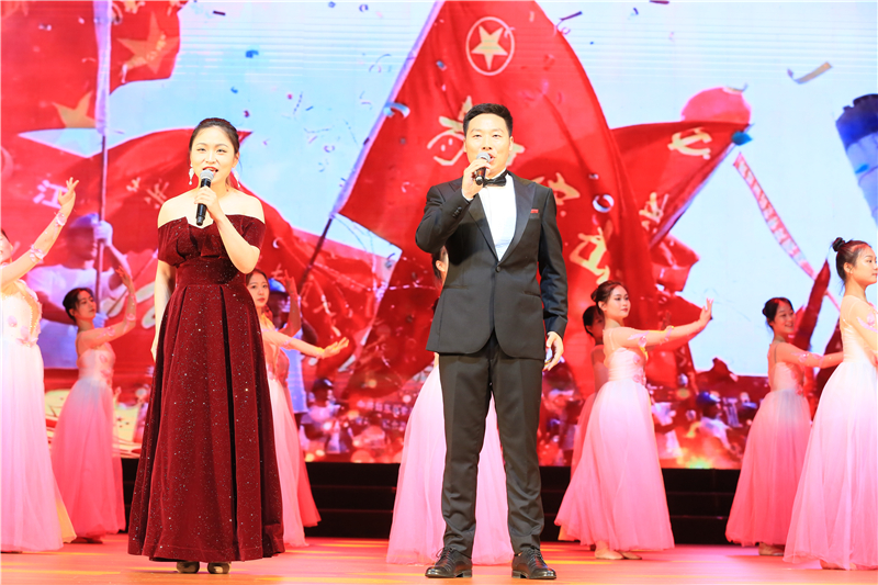悠悠赞党歌,昭昭赤子心。一曲经典红歌《南湖的船,党的摇篮》拉开晚会序幕。四位主持人为大家带来感人肺腑、铿锵有力的诗朗诵《红旗颂》,追溯中华民族伟大奋斗历程的过程中生生不息的发展力量,感染着每一位观众。百年恰似风华正茂,正值党的百年诞辰,《唱支山歌给党听》《你是这样的人》《党啊,亲爱的妈妈》饱含热忱之心,高亢嘹亮,斗志昂扬,唱响爱国爱党之心。