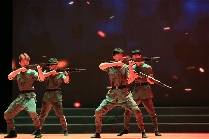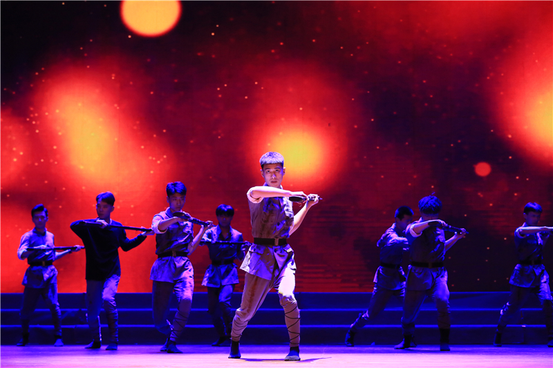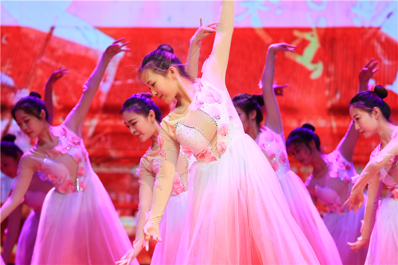 为有牺牲多壮志,敢教日月换新天。舞蹈《亮剑车桥》形象再现以淮安市车桥镇为背景的车桥战役中新四军的英勇抗战的画面,展现燃烧自己、温暖大地的无私奉献形象。同学们深情演唱《映山红》,唱出青年学子激情澎湃、拼搏奋进的青春本色,奏响中华崛起的盛世华章,表达对红军的热爱。