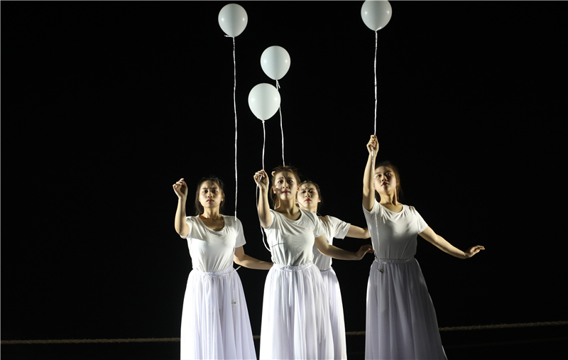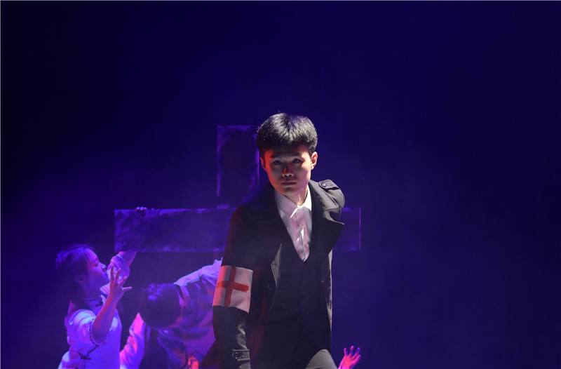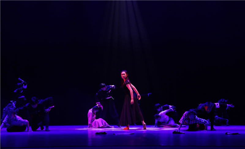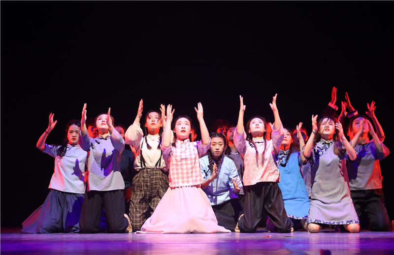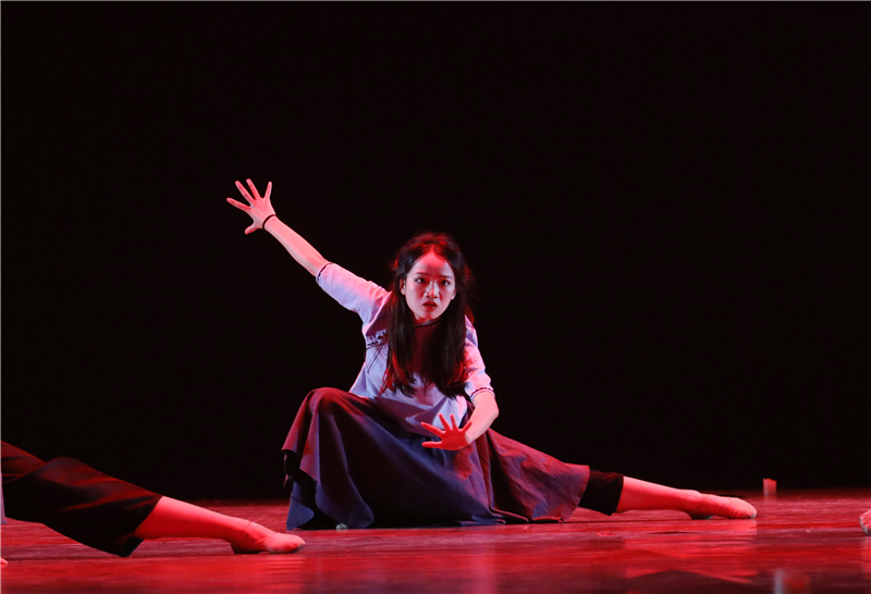 序幕《国殇》破碎繁华,阴霾里是藏不尽的罪孽是八十又四个春秋也洗不淡的国耻。我们走啊走,走啊走……却怎么也忘却不了这南京之殇!舞者们伴着音乐用肢体展现着紧张、恐惧、忧伤、愤怒的场景,仿佛走进了南京之殇的一幕一幕。第一幕《黑暗》山河破碎风飘絮,伴着炮火那群小岛上来的死神挥舞着镰刀逼近,吞噬了最后的光狂风已至,骤雨何远?第二幕《恐惧》血染秦淮,惶恐的百姓们在满目苍夷的废墟里逃窜,藏匿于同胞的尸身之下,双手染满华夏的血,他们挣扎,挣扎,再挣扎!第三幕《杀戮》空一座城,等三十万亡魂,一声枪响,倒下一个人,两声,两个人,三声,三个......你数得清么?枪声亦或亡魂!第四幕《呐喊》你听,那天雷是中国人民不屈的呐喊,你看,那狂风是亡灵们奔腾的怒气,带着这流淌在骨髓里的呐喊与愤满,中华儿女们踏上了中华振兴之路。尾声《和平》钟声在响,白鸽在舞,少年在祈愿:一愿逝者安息,来世安好;二愿山河永在,国泰民安;三愿战火永离,世界和平!在方寸舞台之间,学生们用舞蹈浓墨重彩地勾勒出那段令人难忘的历史进程,给观众上了生动的“一课”,让党史学习教育“舞入人心”。