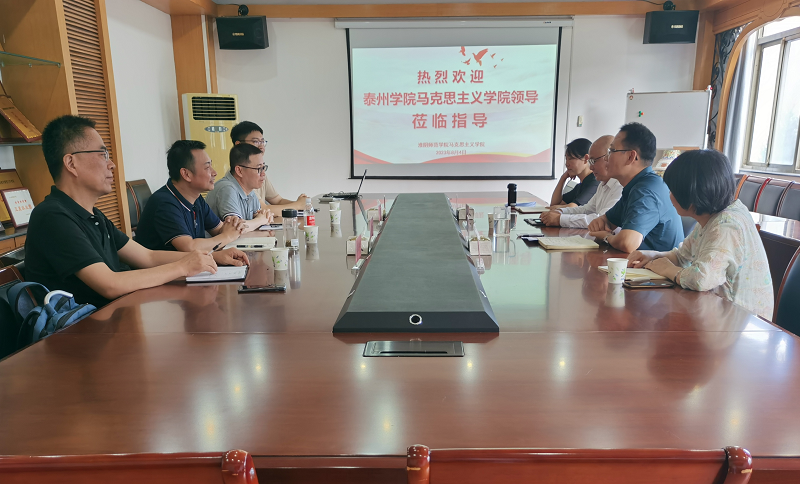淮师新闻网8月7日电(记者 张思琦)近日,泰州学院马克思主义学院党总支书记黄彬、院长刁龙、副院长栾茂峰、教研室主任刘欢一行来必赢nn699马克思主义学院调研交流。马院党委书记刘小华、院长姜强强、副院长顾建红、教研室主任杨成敏参加交流会。