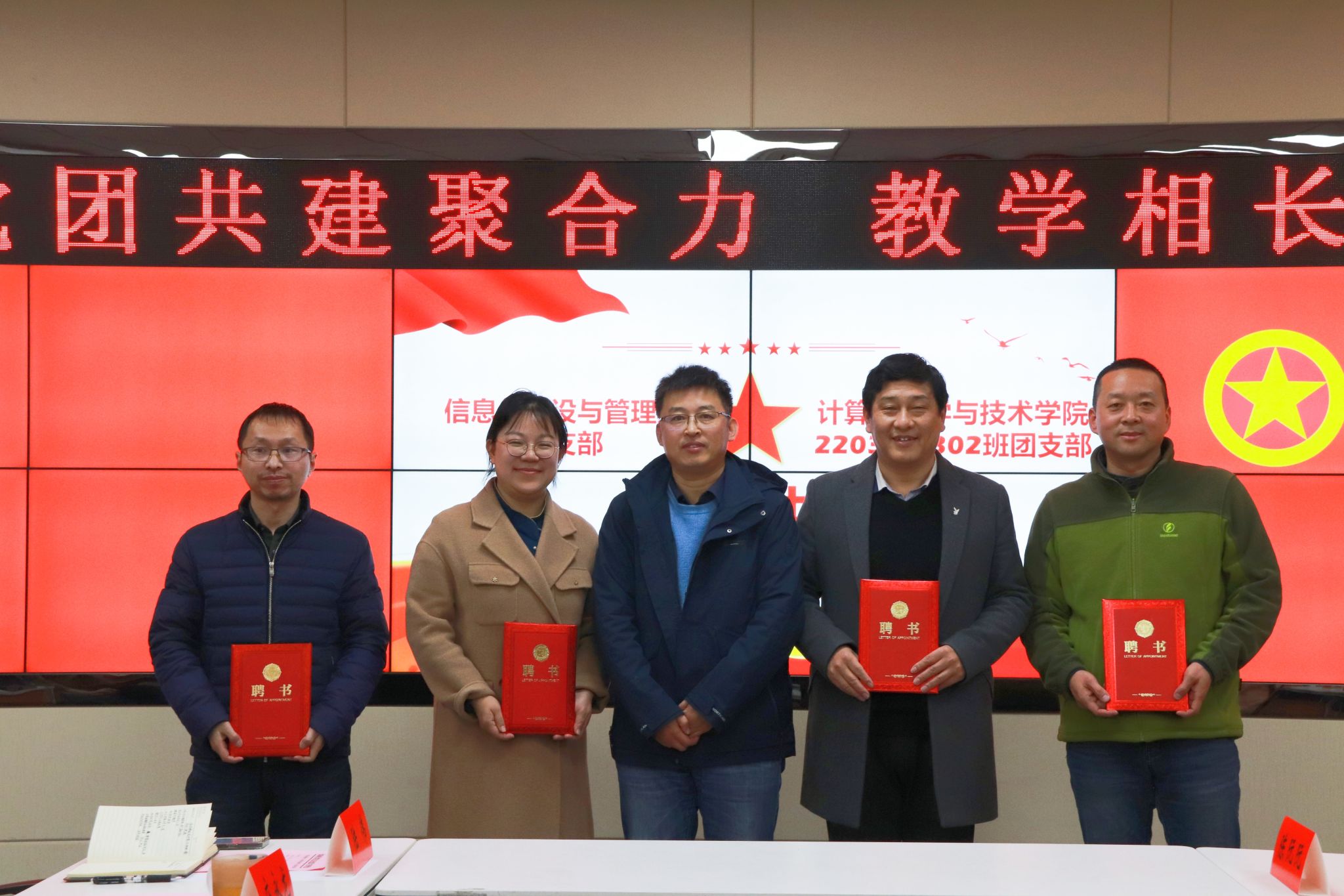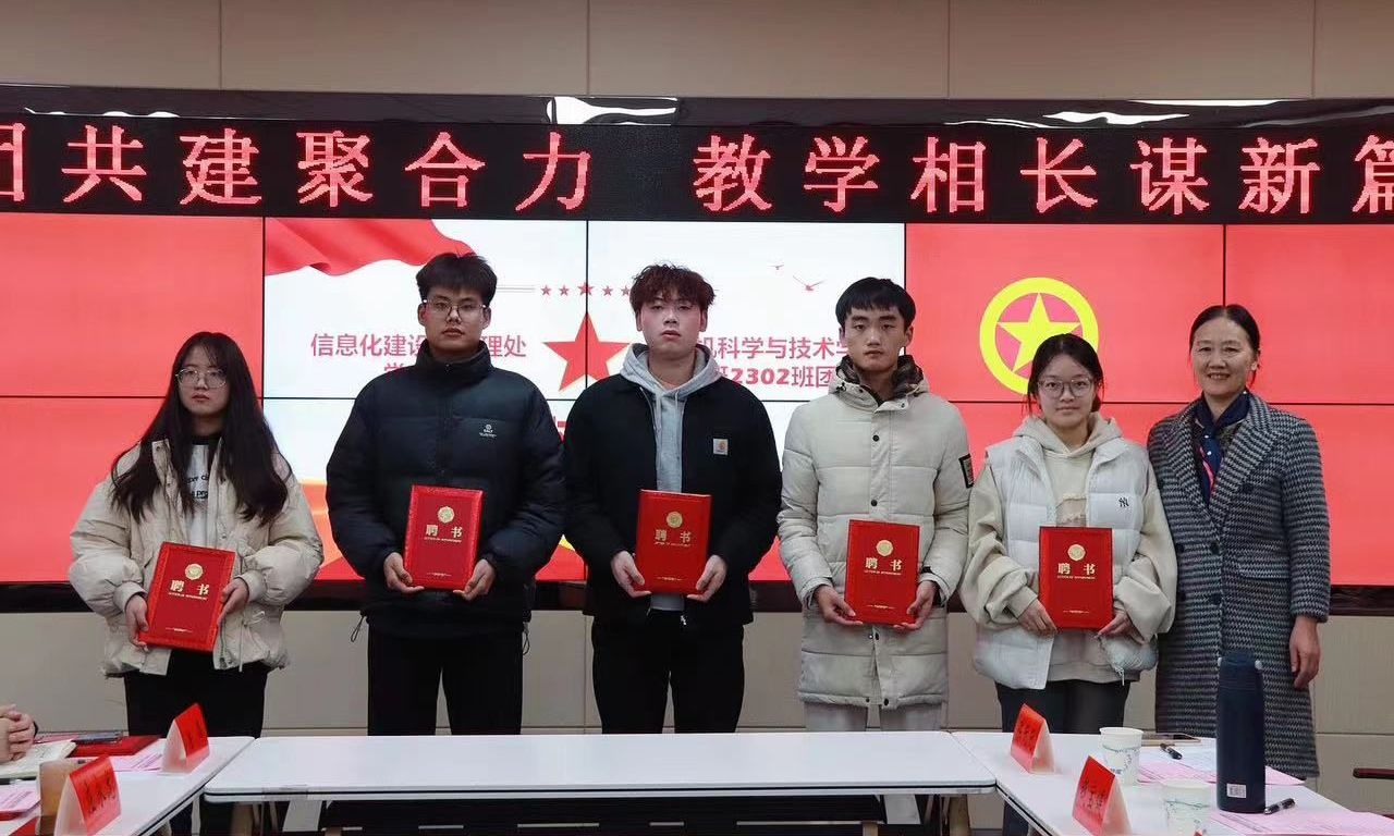 王江涛代表学院聘请信息化建设与管理处党支部4名党员同志作为结对班级的成长和实践导师并颁发聘书。他希望学生团员们能够发挥带头作用,带动青年学生们踏实肯干、努力奋进,不断提升自身的实践能力,未来成长为优秀的专业技术人才。
