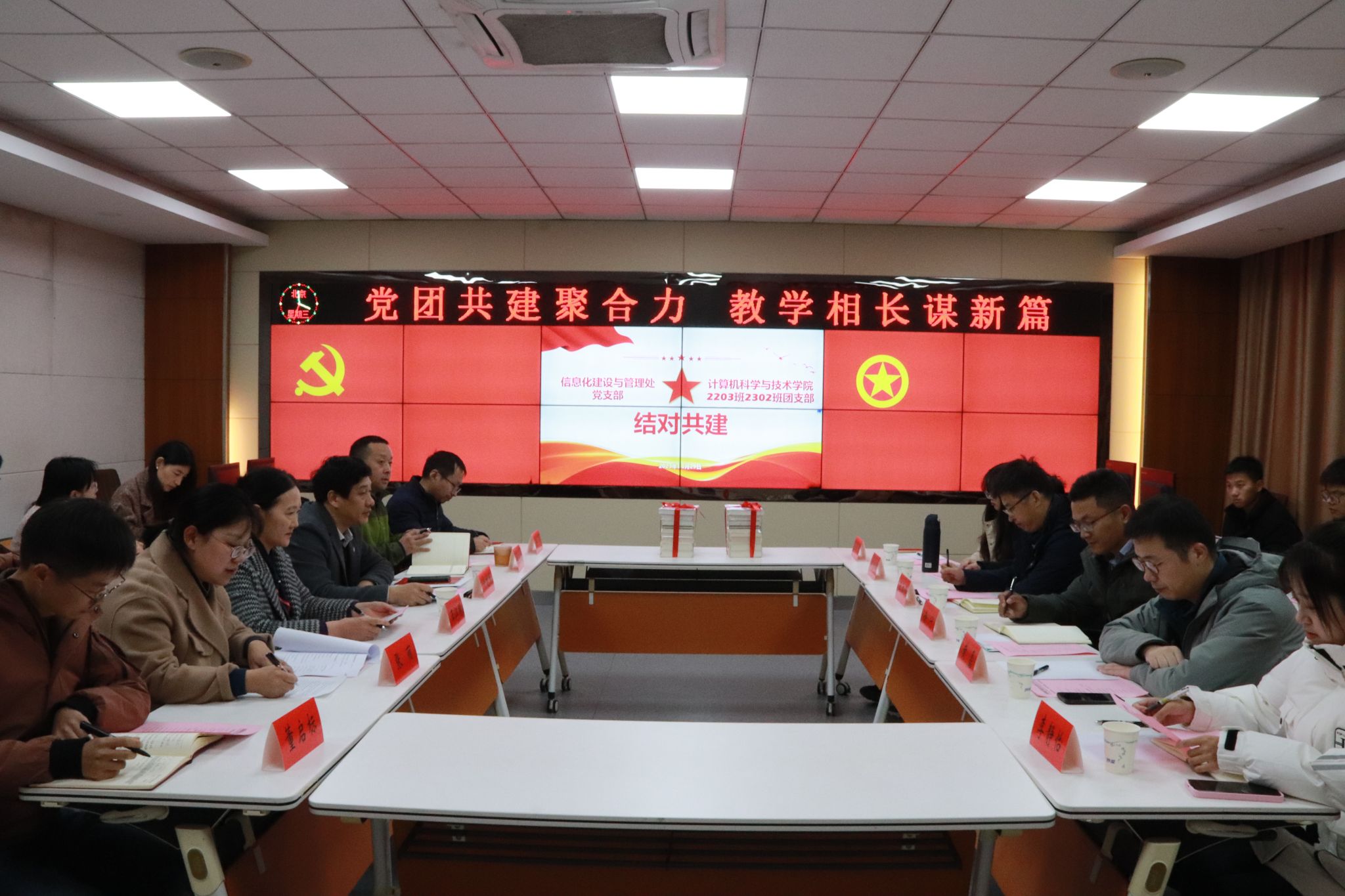 淮师新闻网12月1日电(记者 施雯)11月29日下午,信息化建设与管理处党支部与计算机科学与技术学院2203班、2302班团支部举办“党团共建聚合力,教学相长谋新篇”联学共建活动。机关党委书记王江明,计算机科学与技术学院院长王江涛、学工办主任徐宁以及结对班级学生代表、信息处党支部全体党员20余人参加活动,信息化建设与管理处副处长张丽主持活动。