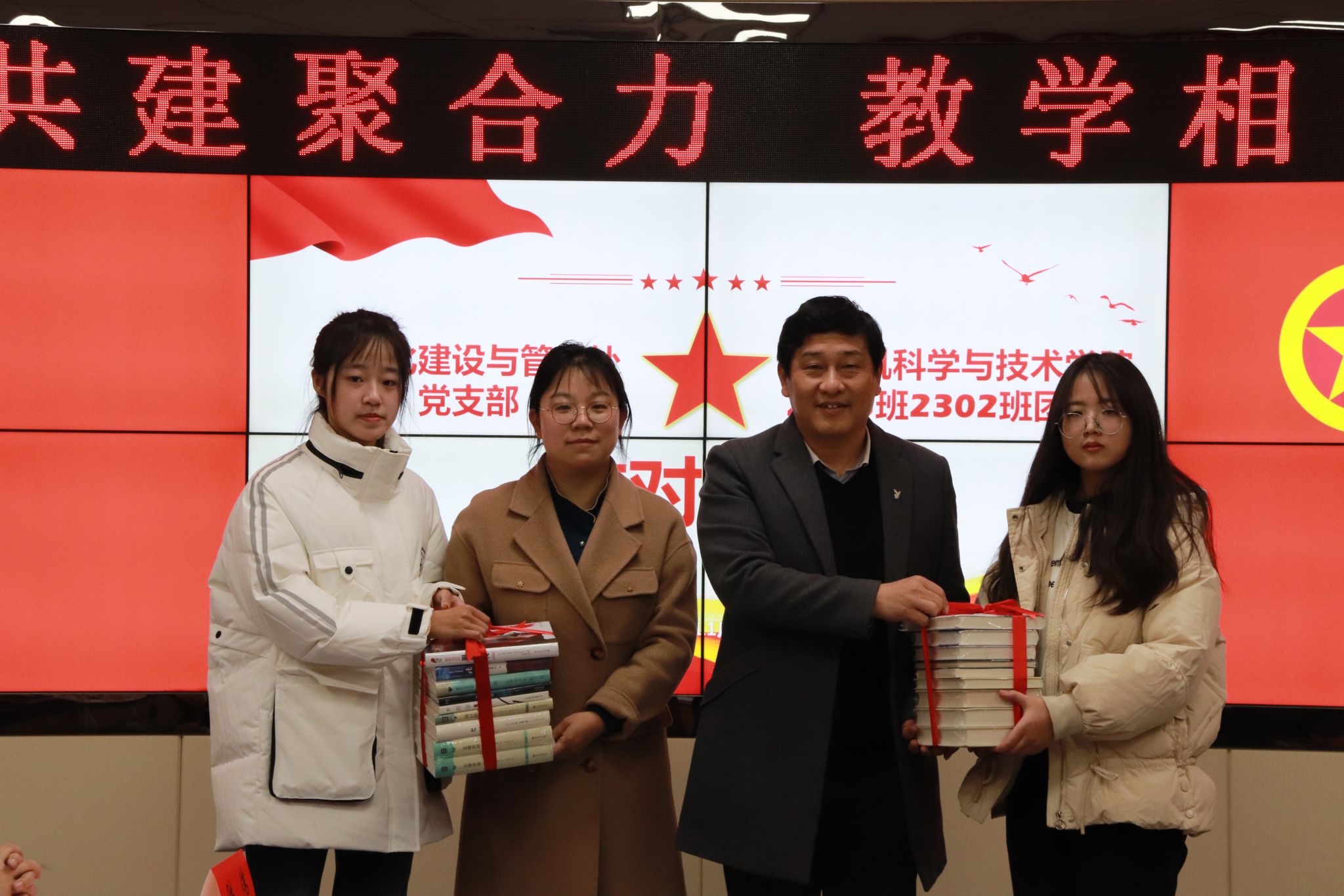 结对共建仪式上,信息化建设与管理处党支部向班级代表赠送书籍。许建峰为师生做了《培养网络安全意识、提高安全防范能力》的主题报告并开展座谈交流,共建双方一同参观了学校数据中心。