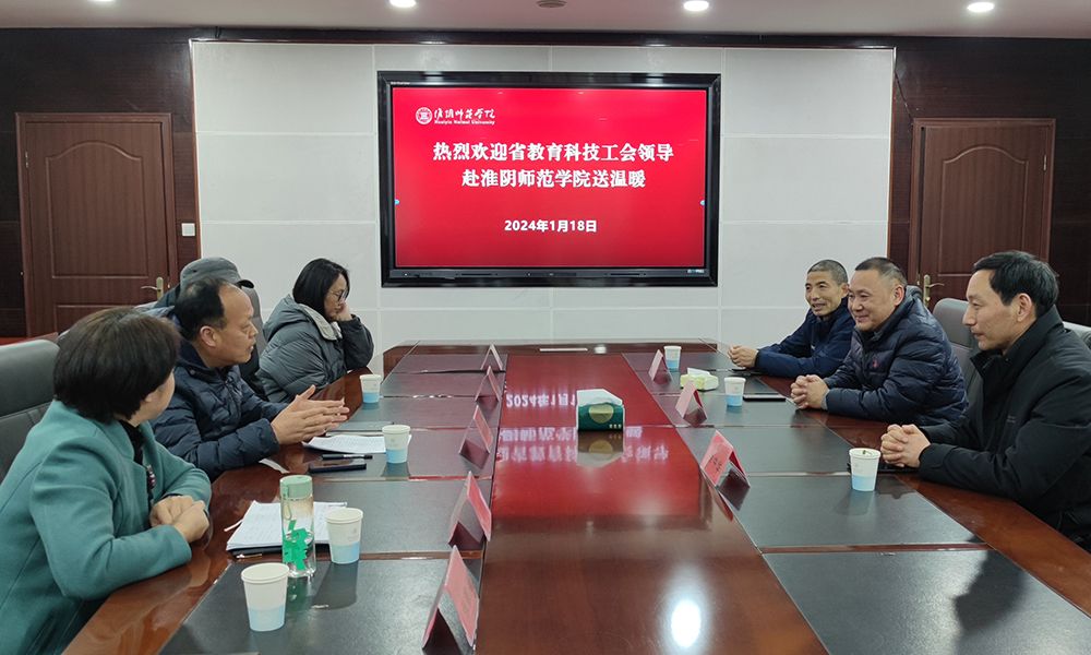 淮师新闻网1月19日电(记者 张银河)1月18日,江苏省教育科技工会高校部部长孙剑、科研院所部部长吴宝城,淮安市教育工会主席徐中华一行来淮师开展元旦春节期间送温暖活动,看望慰问了学校部分教职工。校工会主席邹修明、副主席郭雪晴和被慰问教职工代表参加活动。