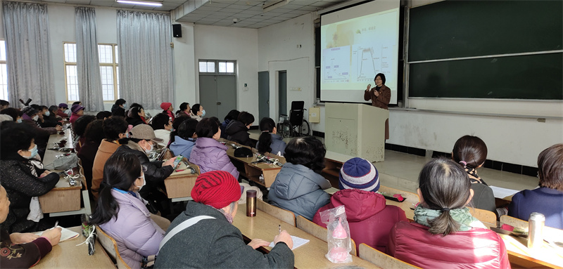 春风十里,健康有你。在学校每一个岗位上都有这样一位女性,辛勤耕耘、默默奉献,他们巾帼不让须眉,为推进学校事业高质量发展作出贡献。活动特邀淮安市第一人民医院生殖中心副主任、副主任医师许金环和淮安市第一人民医院康复中心负责人、副主任治疗师孙文琳为女教职工们开展健康知识讲座。许金环从女人的一生、女性常见病的预防、绝经期对女性的影响、如何健康地度过更年期四个方面讲解关于女性保健知识。孙文琳从什么是骨质疏松症、危险因素、康复干预的手段、运动有效的原理、运动处方的开具五个方面介绍了骨质疏松的早期表现和主要症状,并介绍了如何通过运动等方法进行改善与治疗。她还从三个方面阐述了老年人常见疾病的症状、产生的原因及管理与治疗。