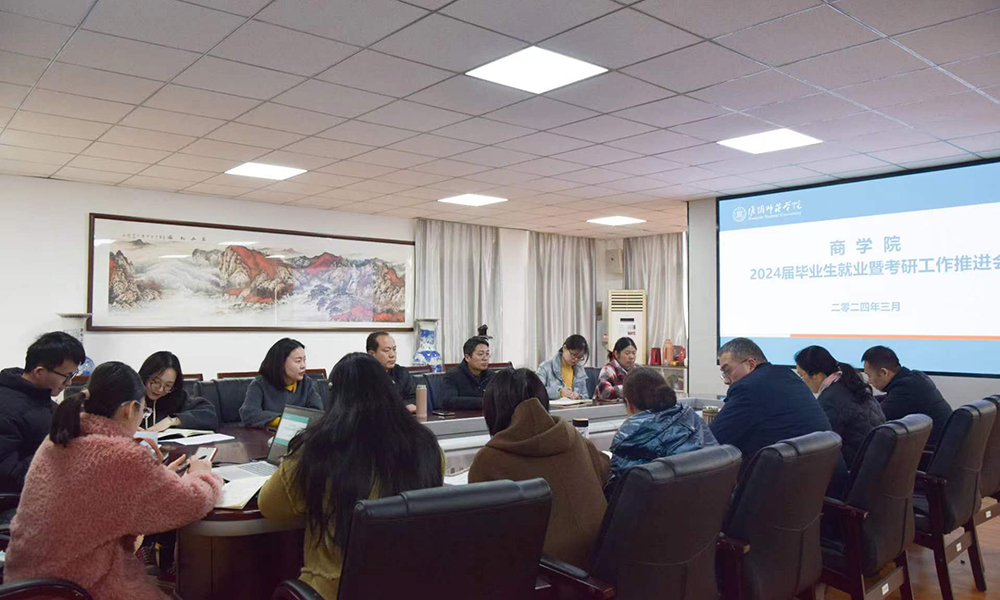 淮师新闻网3月14日电(记者 宋光海)为扎实推进2024届本科毕业生就业与考研工作,全力保障毕业生实现更充分更高质量就业,3月13日下午,商学院召开2024届毕业生就业暨考研工作推进会。学院党委书记丁志同、院长何逢标出席会议并讲话。2024届毕业班班主任、全体辅导员参加会议,会议由学院党委副书记叶姗姗主持。