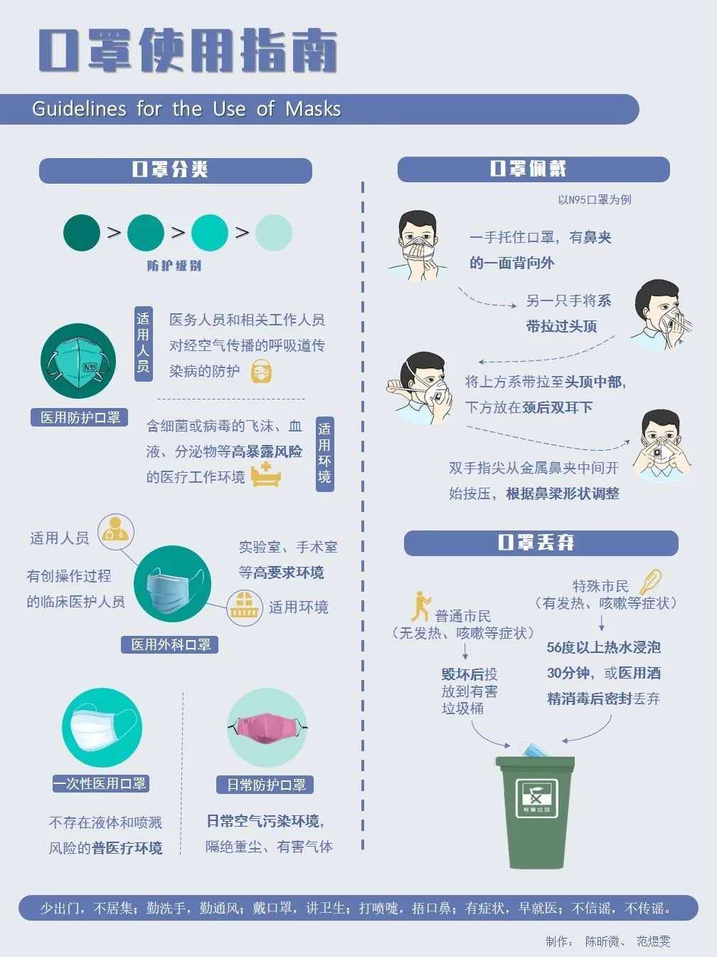 【设计说明】口罩遮住了面容,却挡不住勇气与温暖。口罩是疫情期间防范病毒必不可少的物品,我们采用图文形式,旨在清晰明了向公众宣传口罩的类型、使用以及丢弃的基本知识,希望大家都能抵抗病毒,安全渡过疫情期。很多人有了口罩却不知其如何正确佩戴,在这里就为大家解决了这个困惑,防疫在平时。